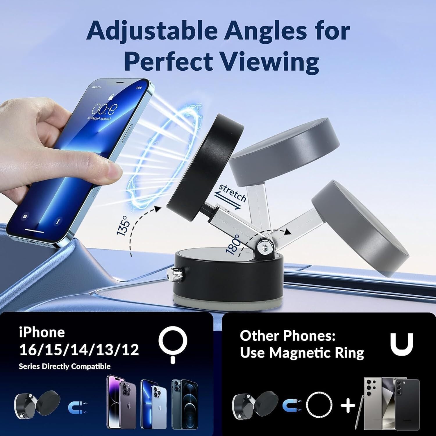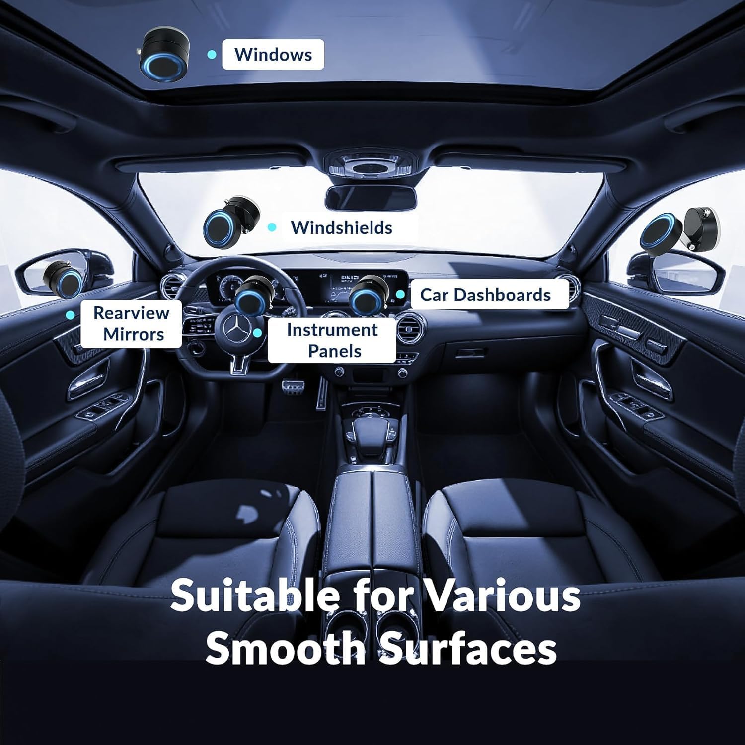 - ✦ Advanced Vacuum Suction Technology: Ensures a strong, secure hold on smooth surfaces such as car windshields, dashboards, and mirrors, providing optimal stability while driving, even on rough roads.